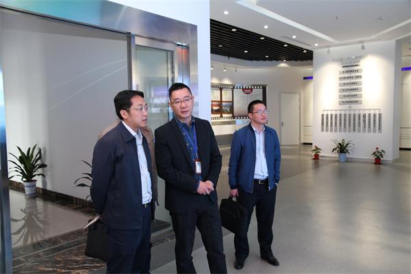 10月23日上午,浙江省委辦公廳綜合二處處長張赟(左一)一行在杭州灣上虞經濟技術開發區管委會常務副主任吳自強等陪同下調研閏土生態工業園。股份公司副總經理阮光棟(中)接待,并介紹公司目前生產經營和項目建設情況,以及未來公司在新產品開發、新技術研究等領域的發展方向。