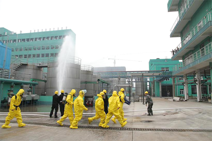 11月10日,在閏土生態(tài)工業(yè)園舉行了閏土生態(tài)工業(yè)園志愿消防隊事故應急處置演練暨園區(qū)志愿消防隊第五分隊成立儀式。隨著閏土生態(tài)工業(yè)園規(guī)模的不斷擴大,園區(qū)面臨的消防安全壓力也越來越大,為強化消防力量、鍛煉消防隊伍,經股份公司批準,園區(qū)管委會保衛(wèi)部組織進行了一次園區(qū)志愿消防隊事故應急處置演練,同時舉行了園區(qū)志愿消防隊第五分隊(閏土染料公司)成立儀式。演練模擬包括員工在生產區(qū)域違章吸煙、亂扔煙頭而造成的車間內易燃易爆物品引發(fā)的安全事故。