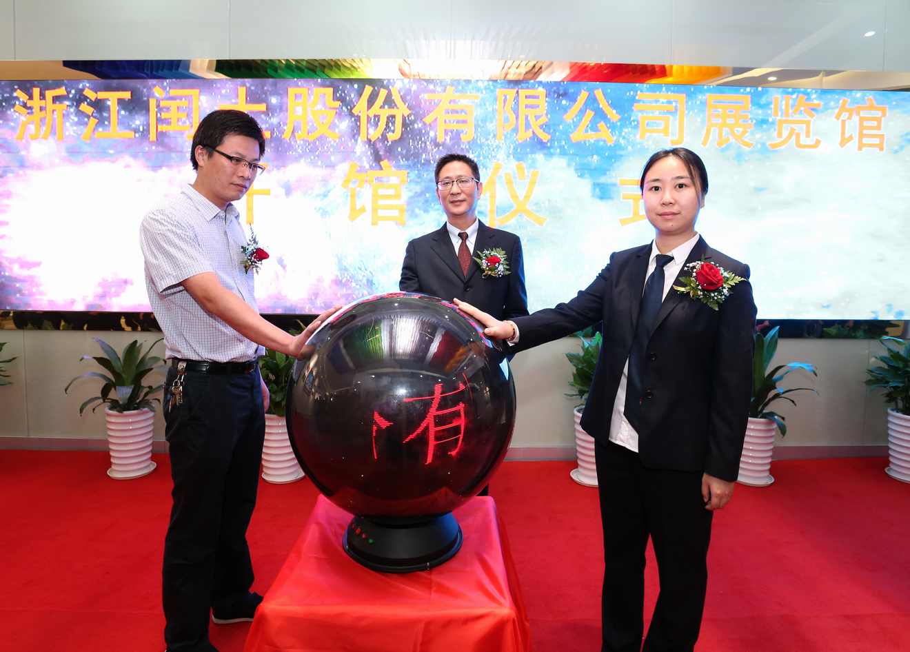 9月8日,閏土展覽館開館儀式在閏土生態(tài)工業(yè)園科技大樓內(nèi)舉行。上虞區(qū)委常委、杭州灣上虞經(jīng)濟(jì)技術(shù)開發(fā)區(qū)管委會主任胡文煒,道墟鎮(zhèn)黨委書記許江軍,浙江閏土股份有限公司董事長阮靜波啟動開館水晶球。